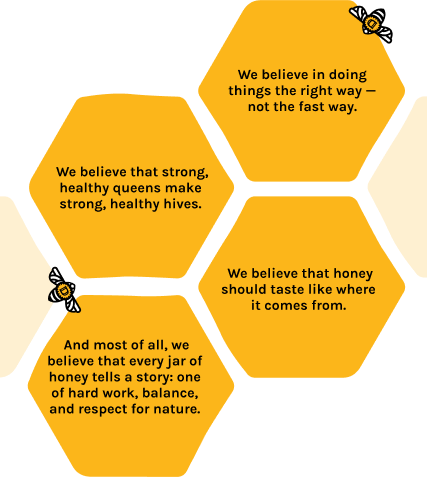 Our mission is simple: To protect our bees, perfect our craft, and share pure honey you can feel good about.